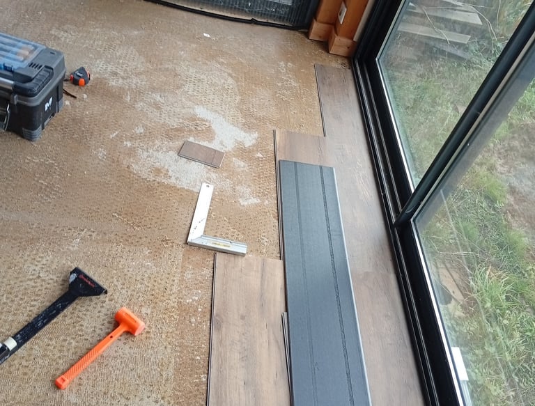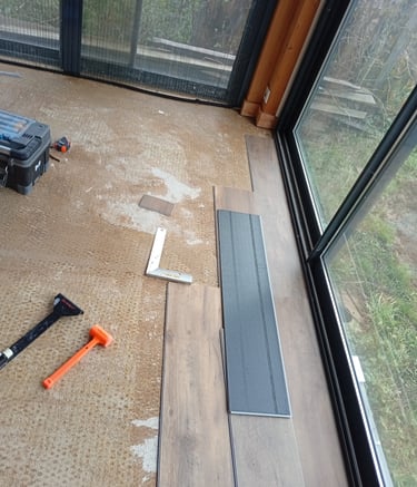 Finition des joints, ponçage, mise en peinture et pose du revêtement Gerflor Création 70.