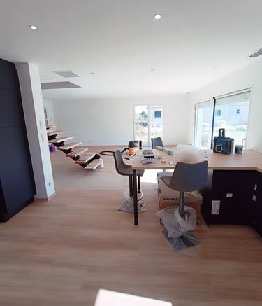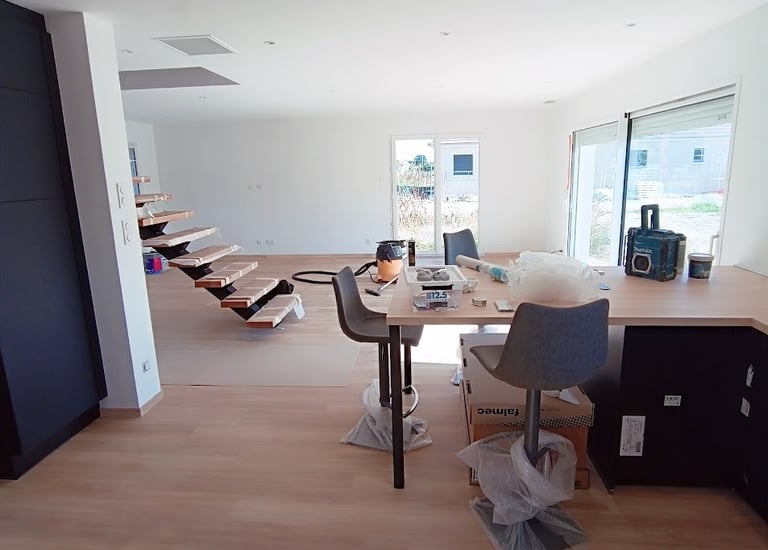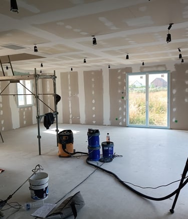 solation, pose de plaques de plâtre, réalisation des joints et finition peinture, ainsi que pose de revêtements de sol.